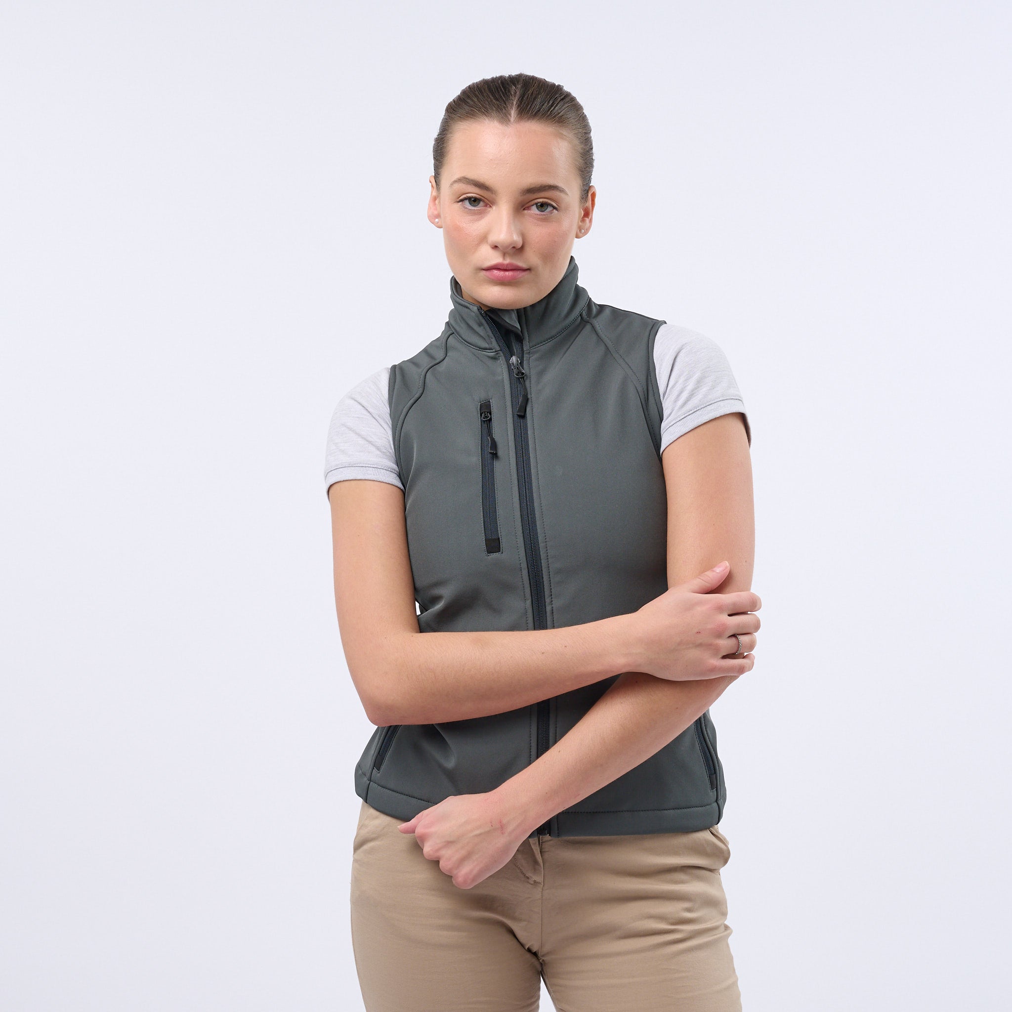 Women's Premium 3 Layer Shaped Fit Soft Shell Gilet - Titanium