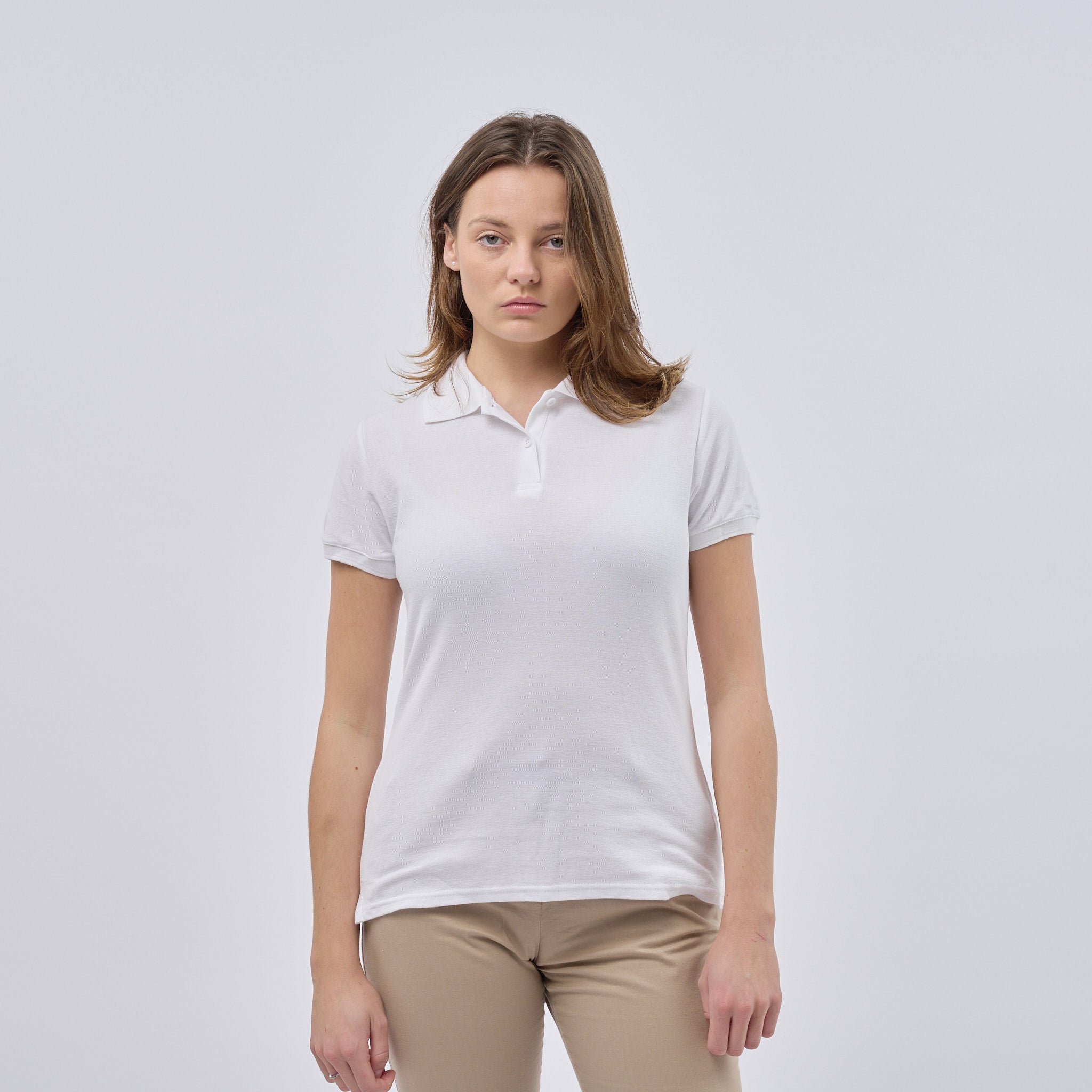 Women's Classic Cotton Short Sleeve Pique Polo Shirt - White